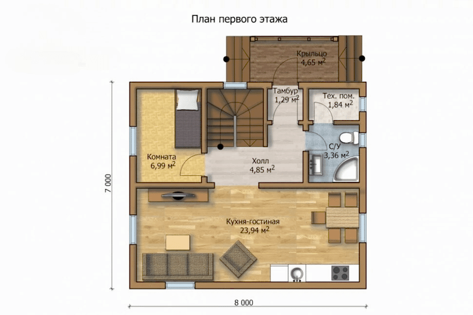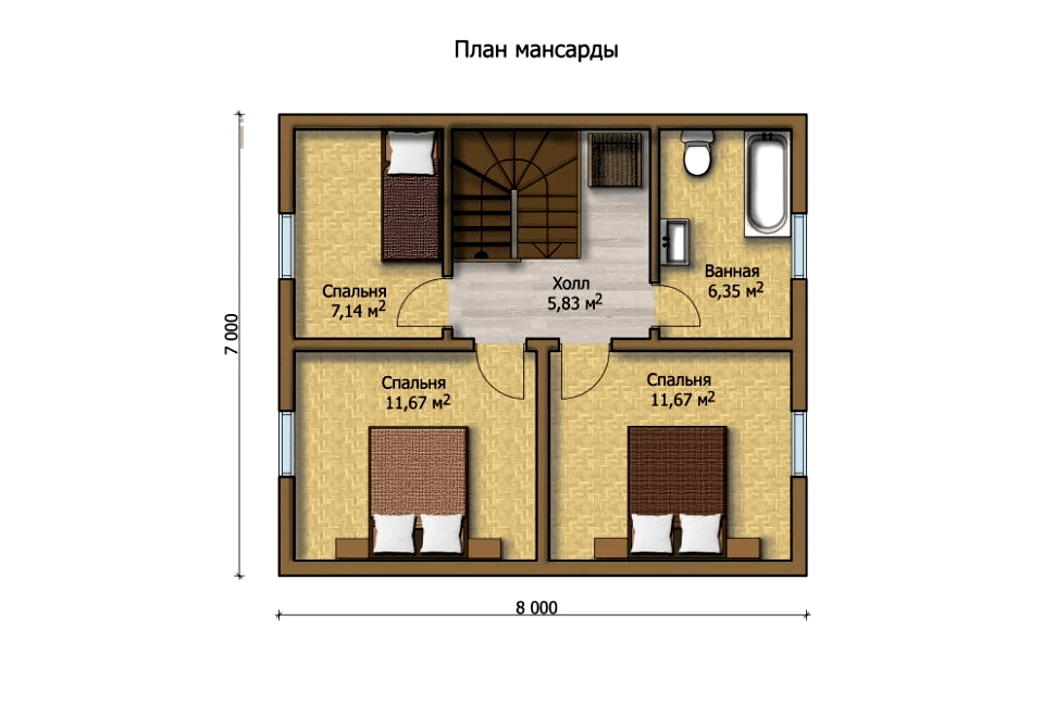 Каркасный дом 7 на 8 в два этажа с Пин-ап