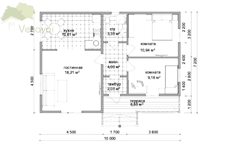 | Внешняя и внутренняя отделка стен | Внешняя: имитация бруса, Внутренняя: гипрок | ||