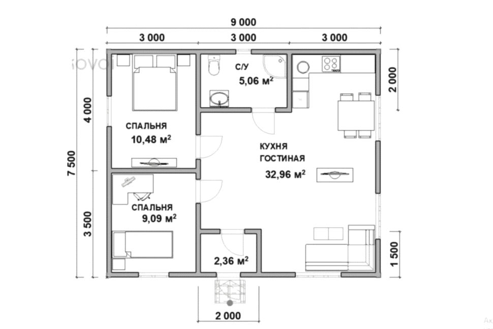 Уютное и недорогое решение для большой семьи - проект каркасного дома 9х7,5 площадью 67 кв. м, перепланировка по желанию заказчика и Пин-ап до участка.